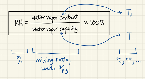 When you are trying to calculate relative humidity, remember the relationships we've talked about in class: